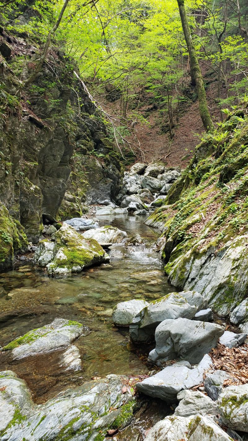 桧塚奥峰へは冬に行く人が多く、明神平でテント泊される方も多いようですが、新緑のこの季節ということもありせっかくなのでほとんど行く人が居ないであろうワサビ谷を体験するべくマナコ谷からのルートを選択しました。