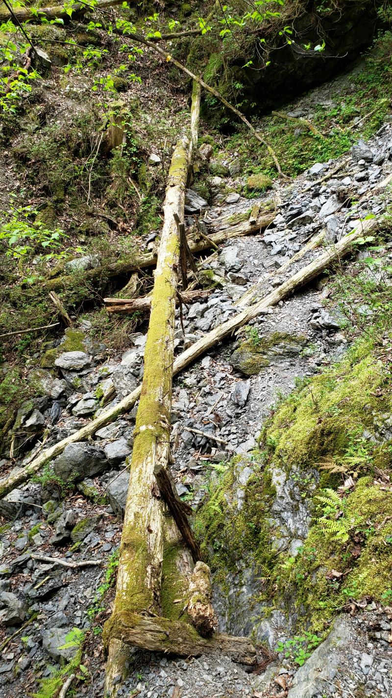 明神平から先のワサビ谷は崩落しているところもあり、道迷いもしやすいため十分に気をつけてください。