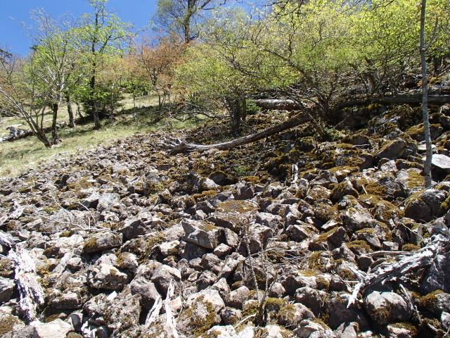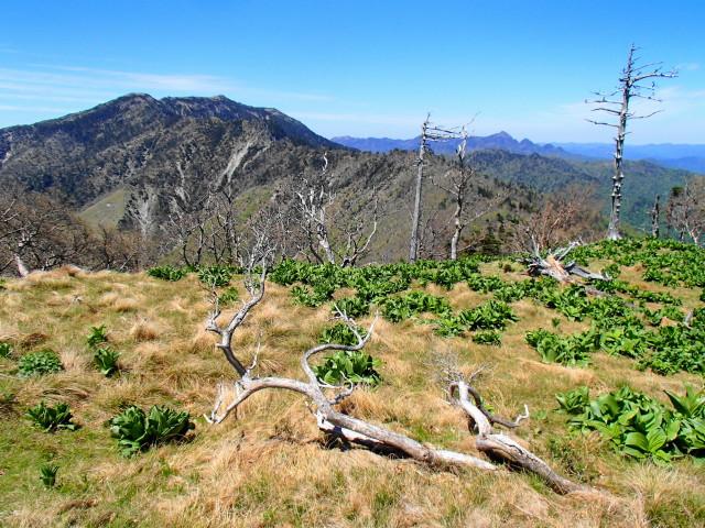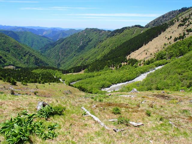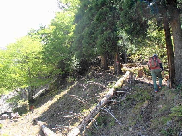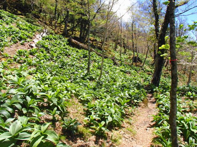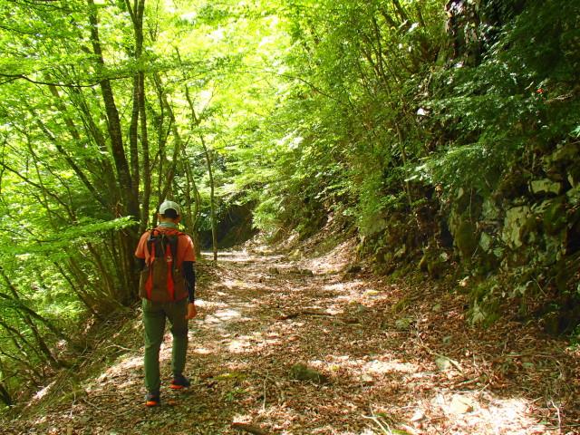 基本はしっかりしたコンクリート舗装された林道なのですが、崩壊箇所が多数ありざれた斜面のトラバースに緊張を強いられる所もありますがおおむね歩きやすいです。林道の最後あたりに古い登山道の看板もありますが、林道を最後まで詰めた方が歩きやすいと思います。林道の終点からはカラハッソウ谷の涸れ沢を左に見ながらなんとなくある踏み跡をたどると神仙平につきます。