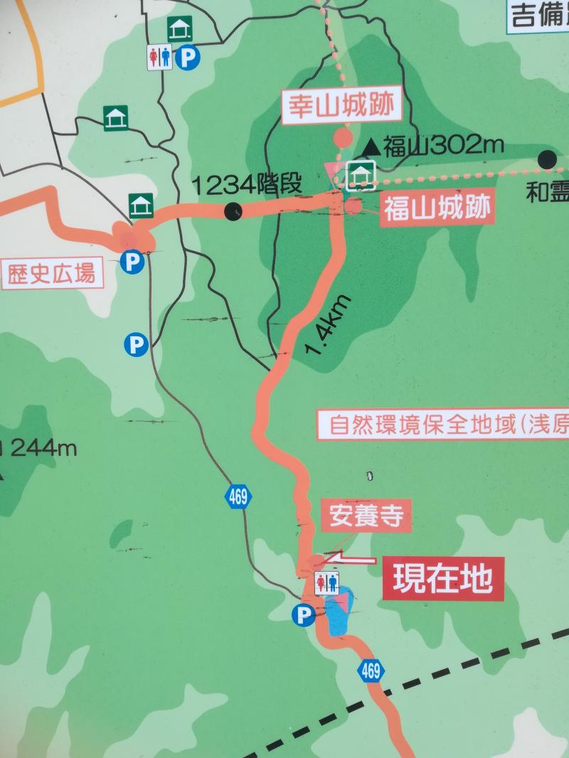 - 歴史広場近くの駐車場(30分)福山山頂(25分)安養寺(15分)歴史広場近くの駐車場