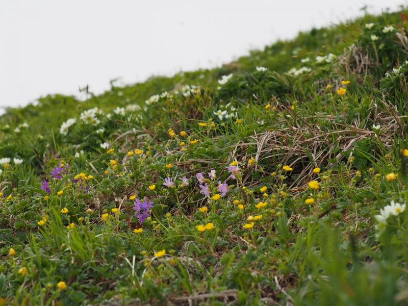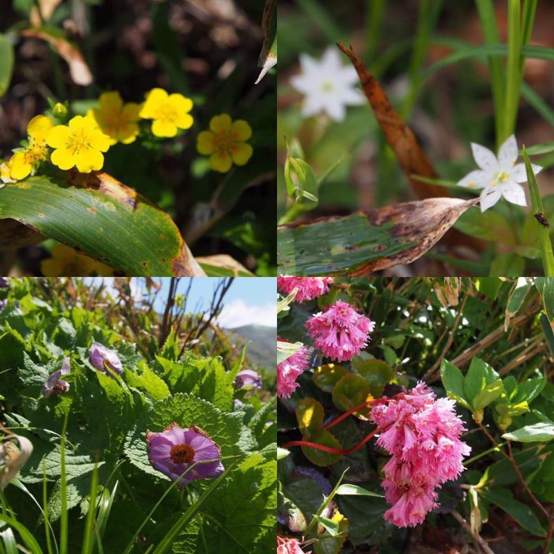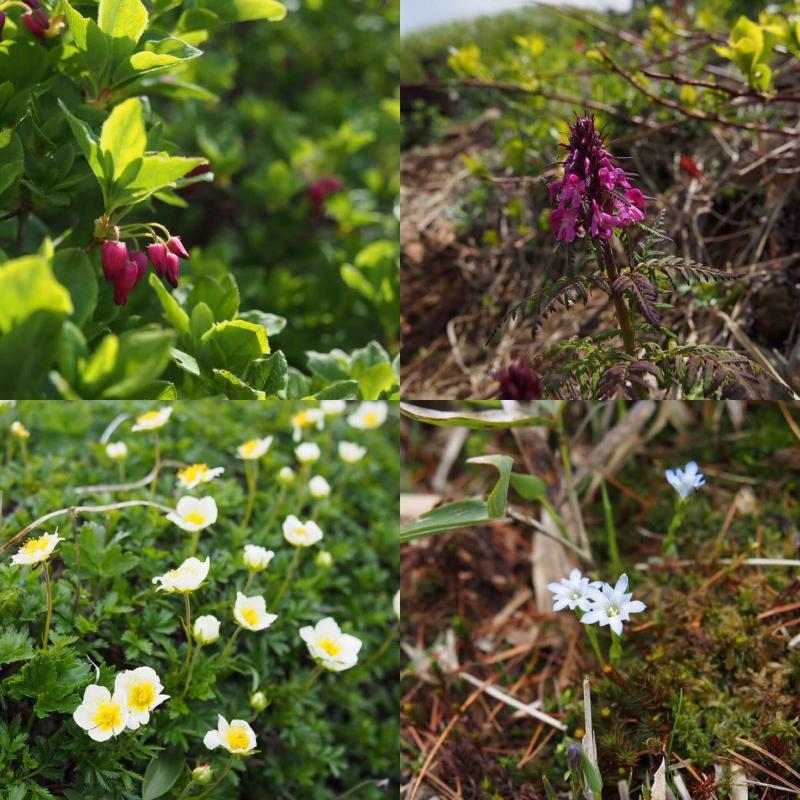 高山植物はタニウツギ、アカモノ、ミヤマキンバイ、ツマトリソウ、シラネアオイ、イワカガミ、ベニサラサドウダン、ヨツバシオガマ、ハクサンイチゲ、ミヤマキンポウゲ、ハクサンコザクラ、チングルマ、ハルリンドウなど咲いてました♫