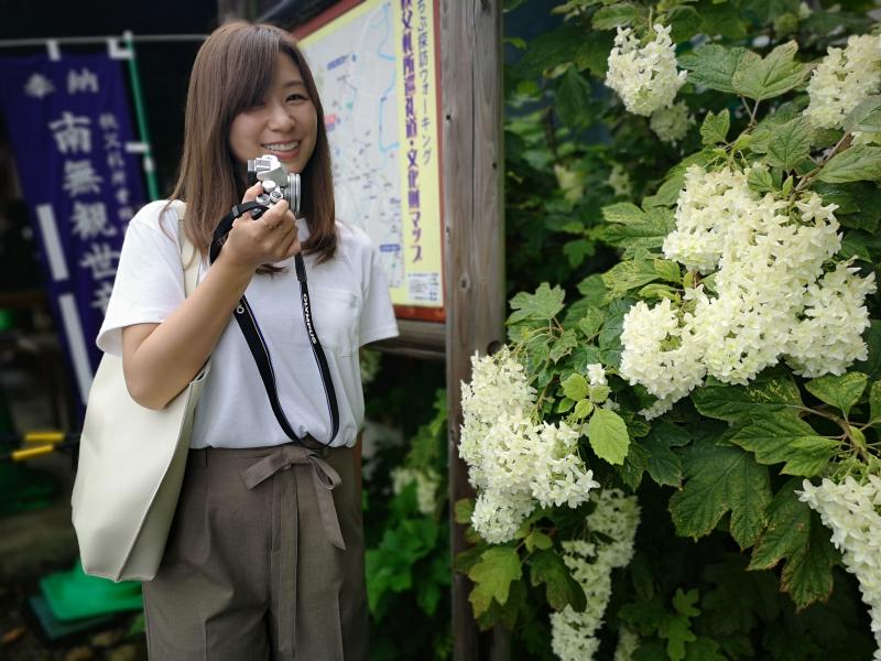 午後は東に向かいつつ、閑静な住宅街を歩きます。旧き良き建物がたくさん、ぜひともお宅訪問させてもらいたい魅力的なお家が立ち並んでいました。途中の今宮神社で茅の輪くぐりをして邪気を払い、さらに先へ。朝に降っていた雨はすっかり上がり、雲が晴れて日焼けしそうな陽気の中、紫陽花などの道端や境内の花が涼しげに揺れていました。