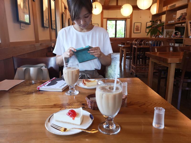 今回の目標は荒川手前の十九番まで。十八番あたりでさすがに疲れてやっつけ気味になってきたので、雰囲気の良いカフェで一本立てることにしました。近くにちょうどガイドブックに載っていた場所があったので、そこを目指して細い山道を登ります。今回の道のりの中では数少ない傾斜、でもこの先に美味しいコーヒーとケーキかあると思えば頑張れました。坂の上に佇む可愛らしいカフェは・・・なんと『本日休業』。悲しきかな、秩父はのんびり営業なのでしょうか。体が強くカフェインを求めているので、札所よりもとにかく喫茶店へ!来た道を戻りカフェを必死に探します。すると彩甲斐街道沿いに取り残されたような一軒のカフェが。カフェというより喫茶店、昭和な雰囲気の店内で、冷たいカフェオレと甘いケーキをいただきました。