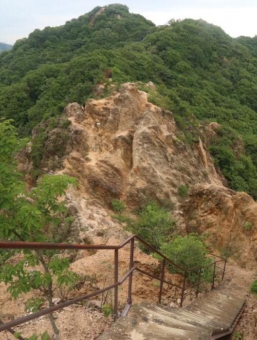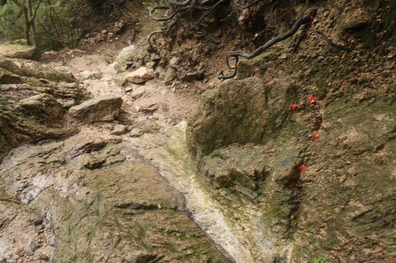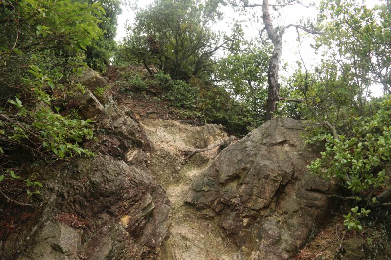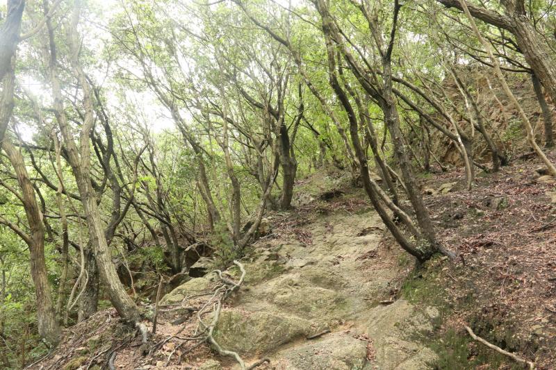 しっかり清めて、さていつもの須磨アルプスに登ります。雨の後で夕方でもちらほら登山者とすれ違います。が日曜日にしては貸し切りが期待できます。馬の背でイケメン君が着替え中でした。
