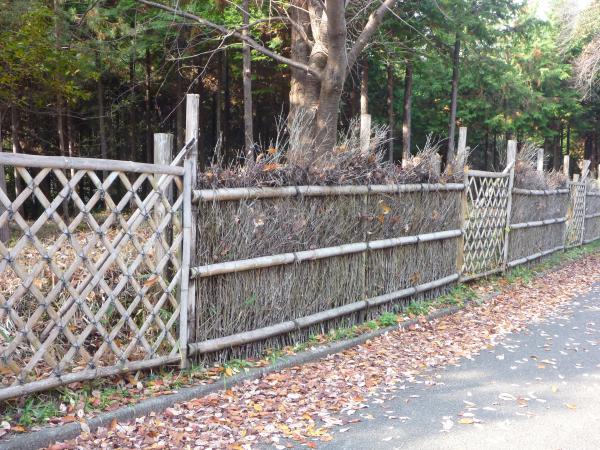 竹薮を鉄柵でなく、竹垣で囲み趣きがありました。