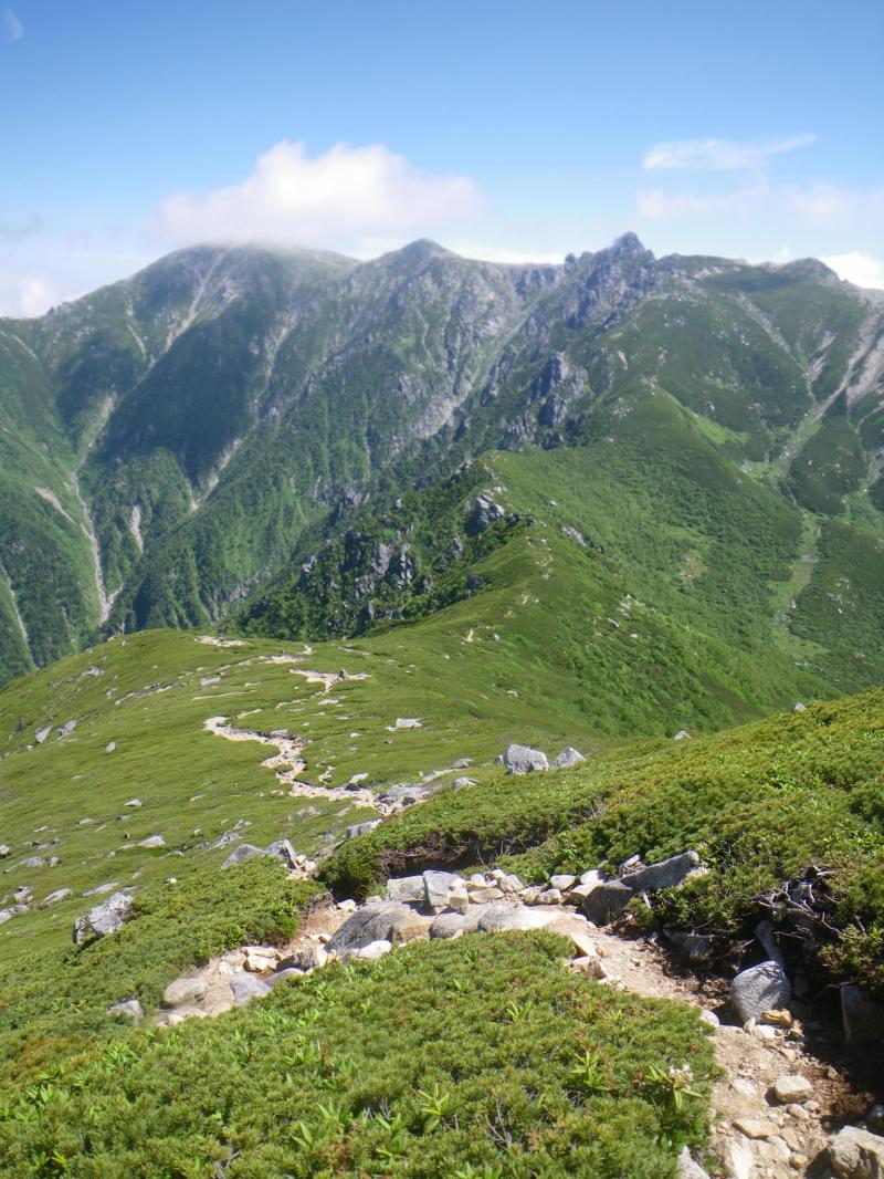 夏の中央アルプス 三ノ沢岳と宝剣岳