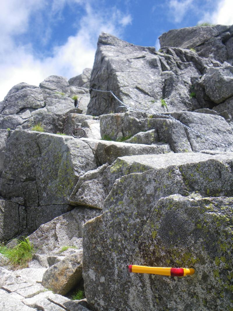 ➈極楽平から宝剣岳へ向かいますが、サギダルの頭付近から下る鎖場が最もやらしい。後は基本、登りなので鎖場でも難しさは感じませんが、高度感はあります。