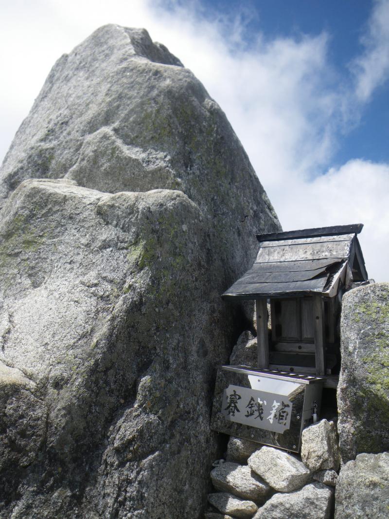 もときた長い長い稜線を戻りますが、またあのハイマツ帯を歩くとなると嫌気がさしますのでさっさと主稜線まで戻ります。分岐まで戻ってきて、まだ時間がありますので宝剣岳経由で帰ることにして、鎖場へ向かいます。3年前はガスの中、逆コースから来ましたが、今日は晴天で、こんな鎖場があったかなと思いつつ、なかなかいい箇所に梯子も整備され、歩きやすい悪場。こちらへ向かってくる登山者もいなかった為、時間待ちもなく、ほどなく山頂へ進めました。宝剣山荘側から向う人が多いので、山頂と山頂から先は人が多く、順番に下っていきますが、こちらもちょうどいいタイミングで下る人が多く、スムーズに下降でき、ラッキーでした。