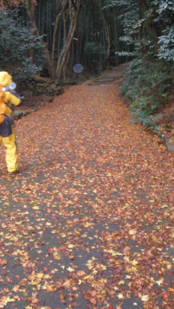 - 朝から雨だったので落ち葉が多く、ところどころに水たまりもできており、少しぬかるんでいるところもありました。