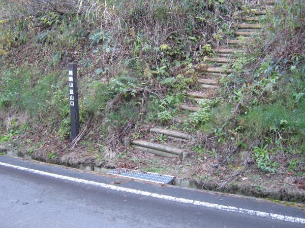 - 駐車スペース - 0.45 - 野土路乢 - 0.3 - 山頂 - 0.10 - 分岐 - 0.3 - 林道口 - 0.3 - 駐車スペース