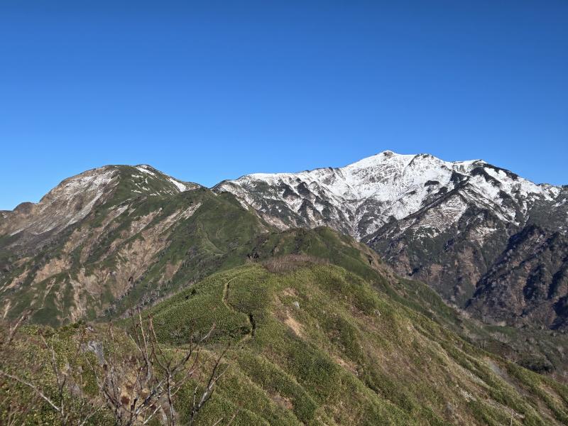 アップダウンを繰り返して、漸く九至勢に。おおぅ、見える!ワタシにも見えるぞ!プリンの様な山体が!と同時に、目に見えて急傾斜なルートも丸見えなので閉口する。高妻山の別名は「戸隠富士」。ここだけ見れば納得の別名だ。