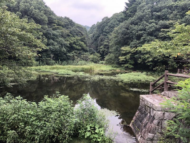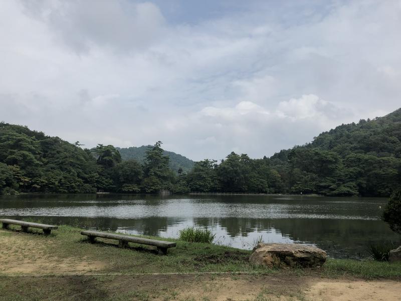 ・4月に干上がっていた猩々池、今日は十分な水量がありました。猩々池はふもとの集落の渇水対策に江戸時代に造られた池です。