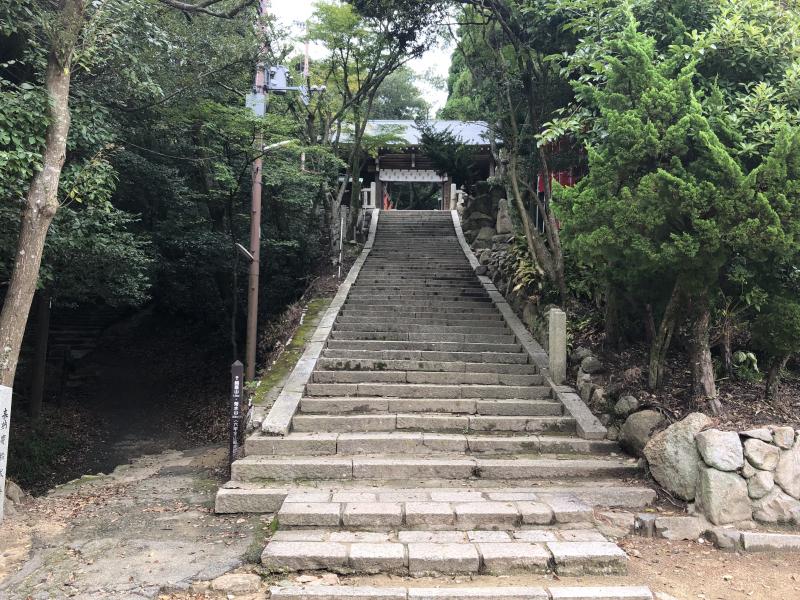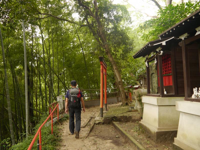 ・元町西口から坂道を登り兵庫県公館、県庁、相楽園を通過してしばらくで諏訪神社に出ます。大師道登山道は本殿の左手の小路を上がってゆきます。大師道は木陰が多く助かります。