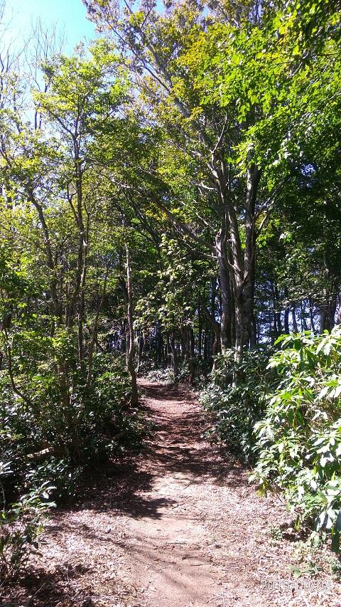 頂上付近からしばらく歩くとブナ林が一部広々としていますが、見晴らしの良いところがありません。