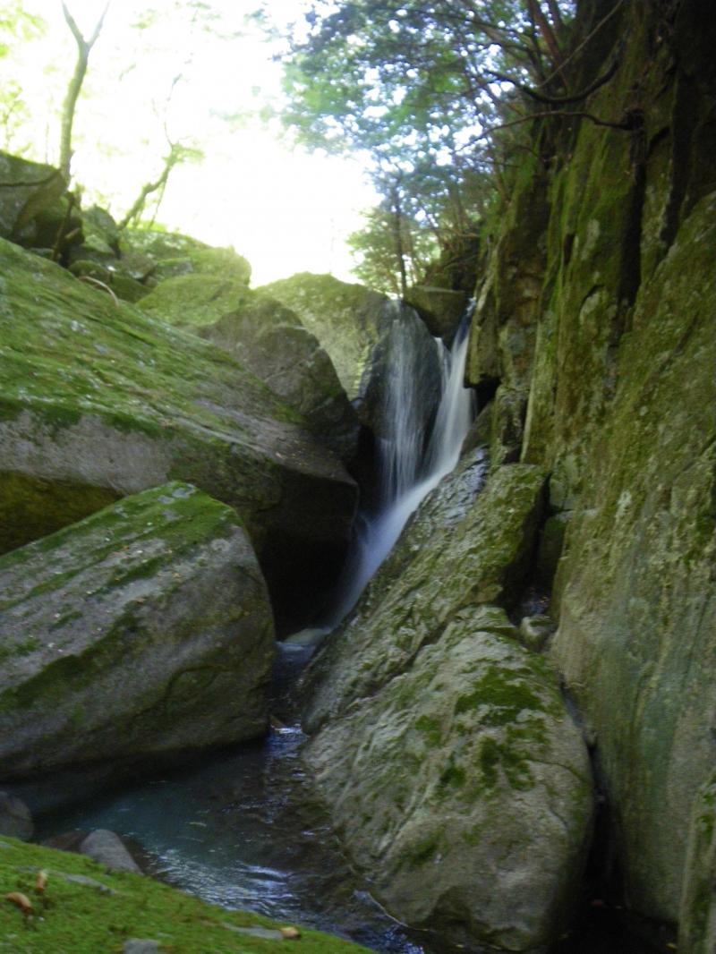 ➃部屋滝は支流の越前谷にかかる猿手滝右手のロープのある巻道で大きく巻きますがあまり、左へゆくと越前谷に進んでしまうので、一段あがると右へ進みます。滝本北谷に戻るとしばらくナメ地帯です。途中、瑠湾殿滝のナメ滝がありますが、左岸の巻道で超えます