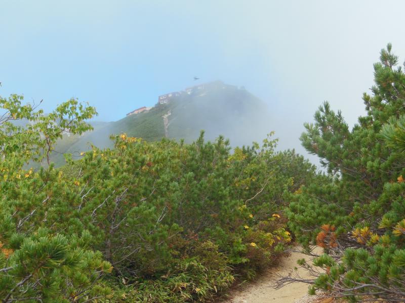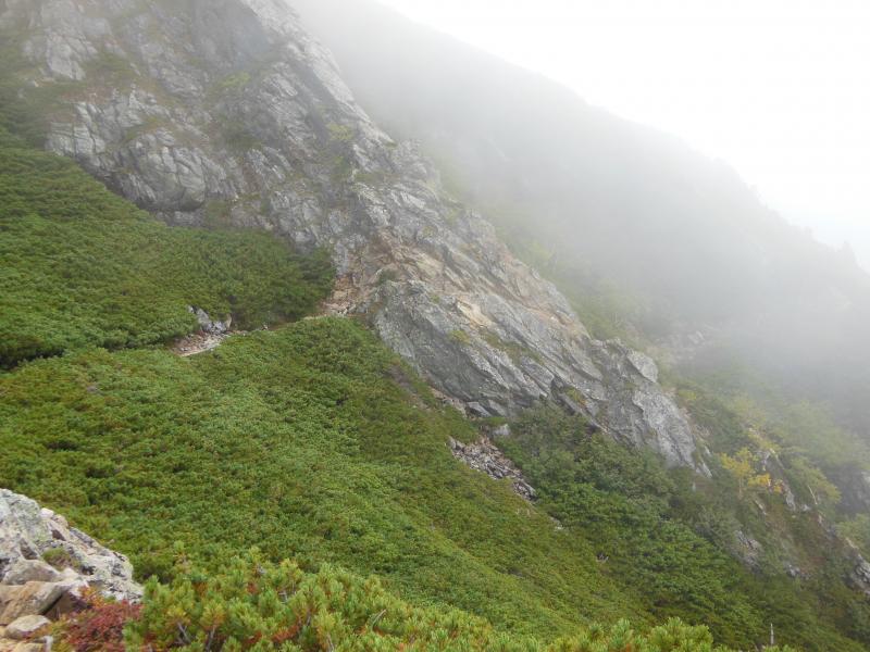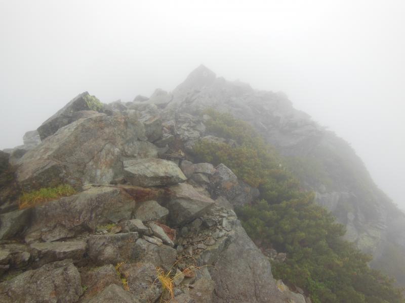道中の登山道あたりから曇りはじめ、気づいたころにはガスに飲まれて展望どころの話ではなくなってしまいました。