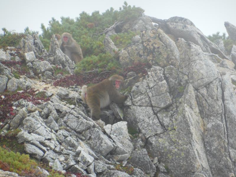 大天井岳の近くでは、ニホンザルの群れが何グループか確認出来ましたが、登山道に居座って食事をしている場合があります。