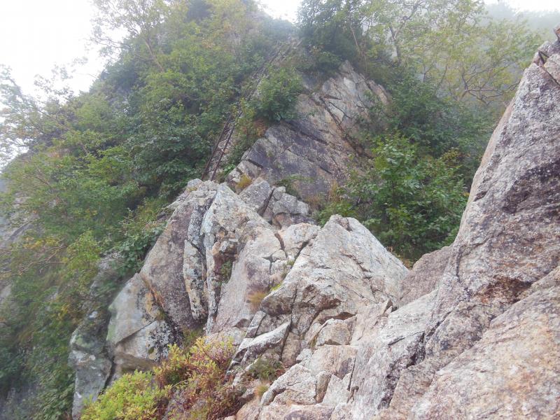 そのため、登山道が滑りやすい状態となっていますので、クサリ場、梯子が連続する区間の通行は細心の注意を払って進むようにしましょう。