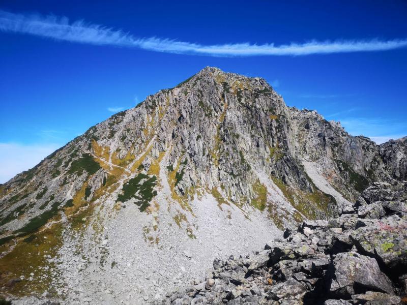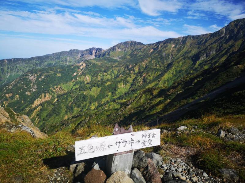 ところがのんびりと景色を楽しみながら、はせいぜい室堂まで。浄土山のガレた急登は短いながらなかなかしんどく、足元ばかりいて見ていて頭をぶつけたりして心が折れかけてしまいました。しかも龍王岳を過ぎるとみるみるガスが湧いてきて遠くの景色もうっすら、獅子岳から先は底にあるはずのザラ峠が一向に見えず、延々と下っている感覚でした。