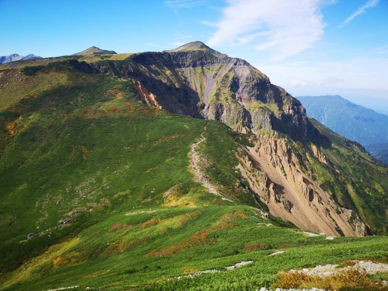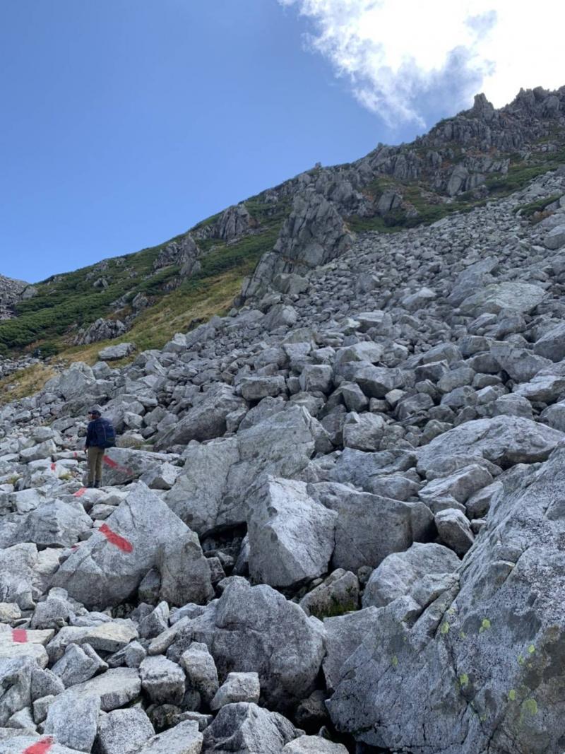 ・コース上の難所は獅子岳~ザラ峠。急斜面でザレて滑りやすいです。