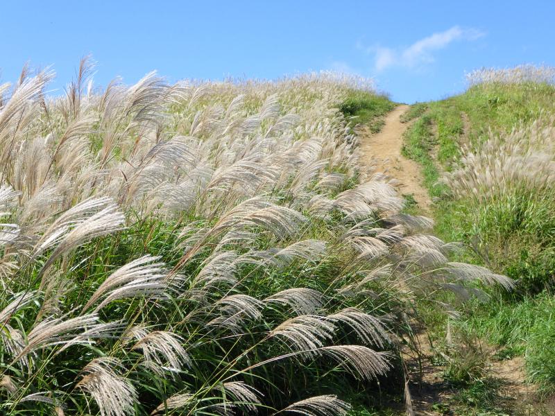 山頂は広く、黄金色のススキがゆらゆら。見事です。