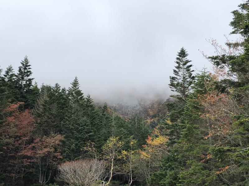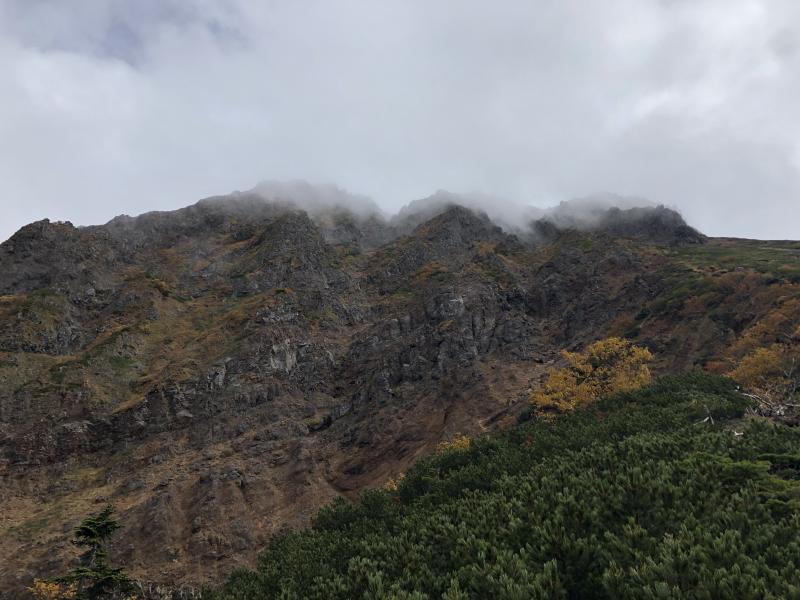 - 初日は中腹より上でガスが掛かるが気温10度で歩きやすい。岩は乾いている。