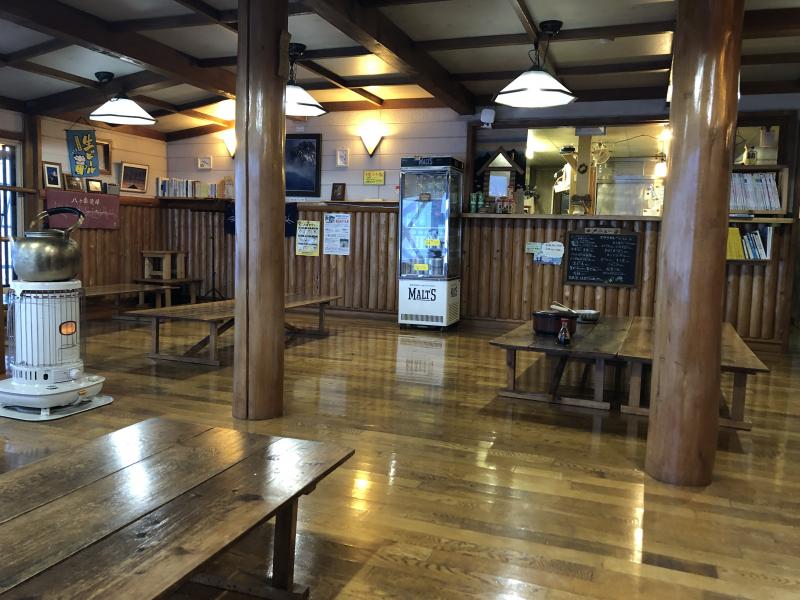 2899.2mの頂上は本来なら八ヶ岳全域、南アルプスから富士山まで見渡す限りの絶景が広がり記念写真を撮る登山者があふれ、コーヒーでも飲みながら今日の行程に思いをはせる至極の空間、です。たまに、たまにですがガスで視界0、強風で眉間にシワが寄ることもありますが、まあそれも山です。ザックを下すこともなくさっさと頂上山荘に逃げ込んだのは秘密です。