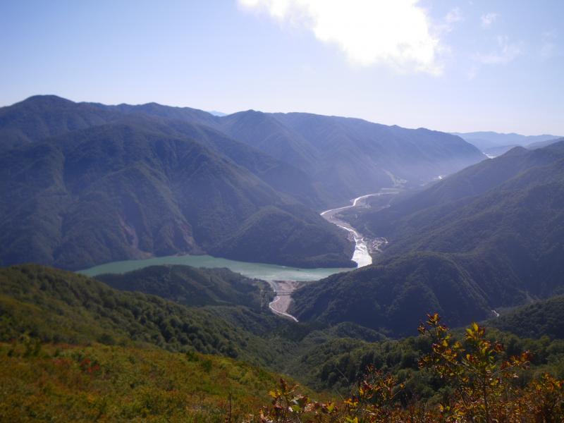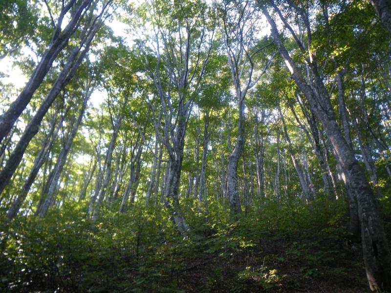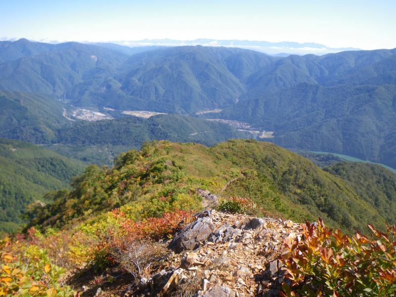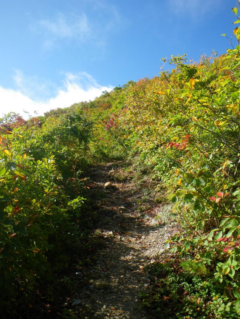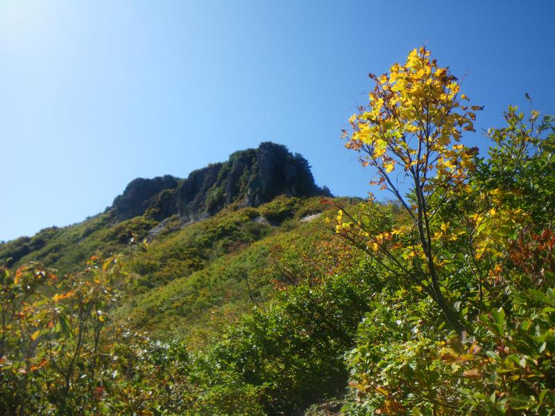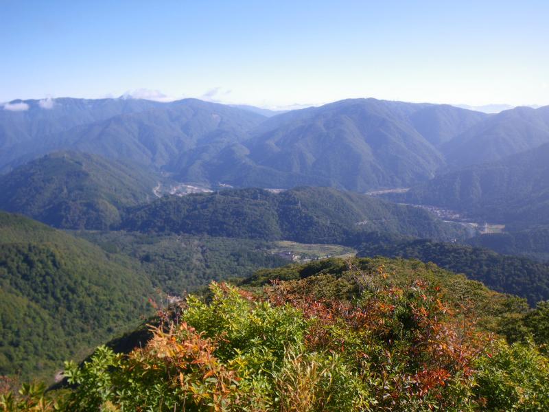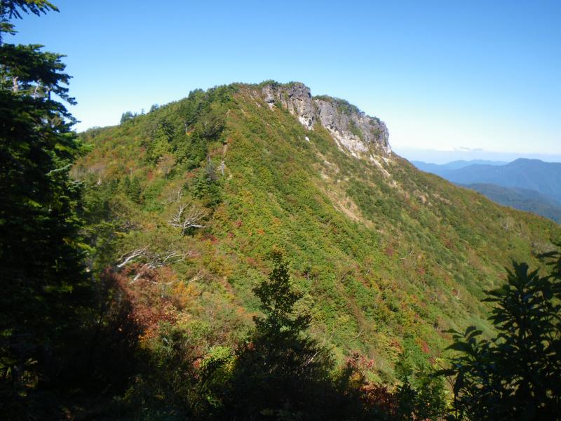 今回は紅葉を求めて、トヨタ白川郷自然学校から野谷庄司山を経由し、周回する日帰りコースをたどりました。下部はブナ林の森で、1200m付近から赤頭山が初めて前方に見え、展望が効く尾根に変わります。本来なら真っ赤な紅葉が見られる稜線ですが、まだ早いのかやや色づく程度。