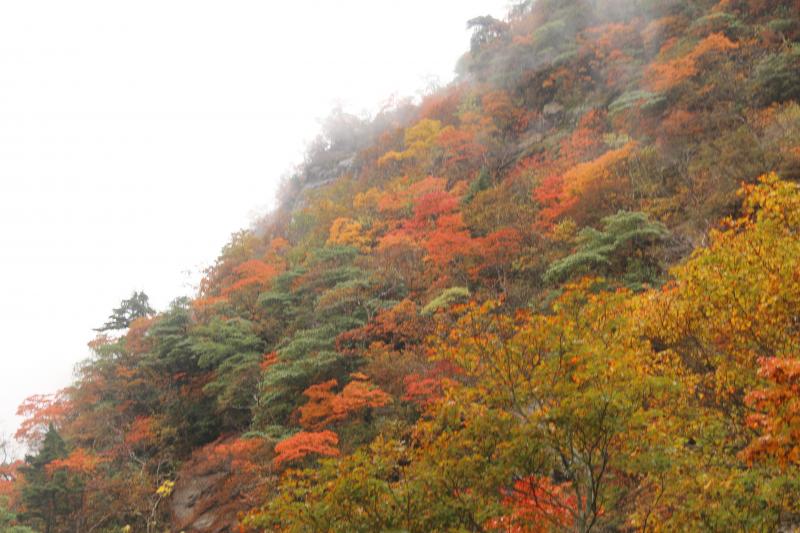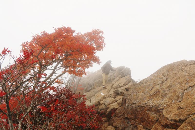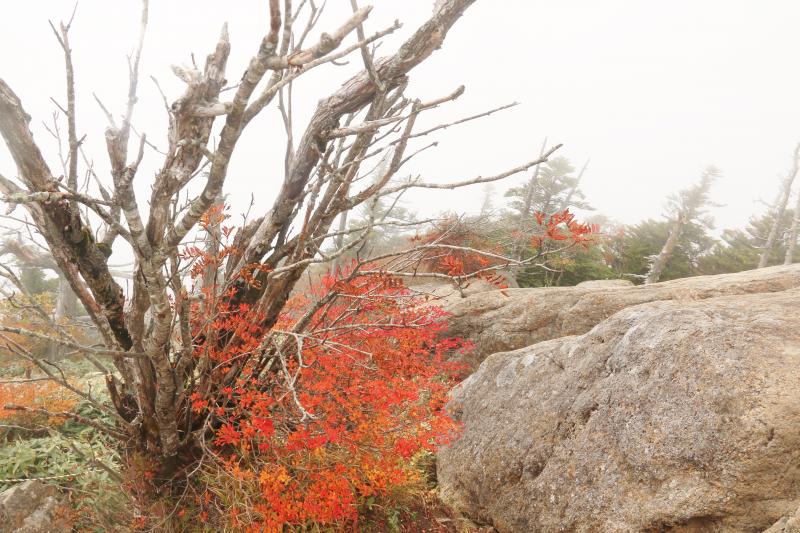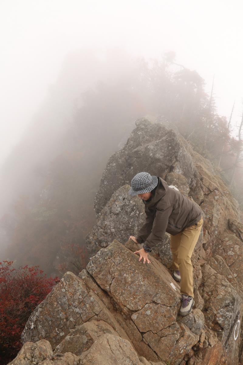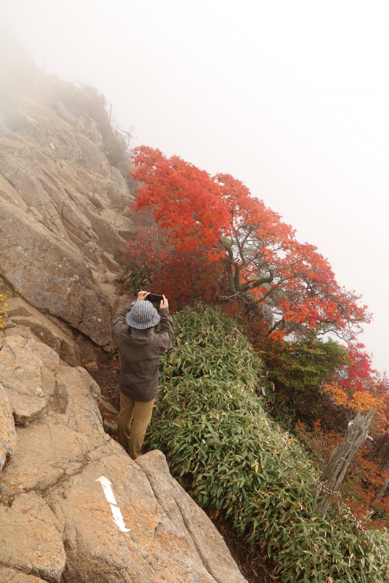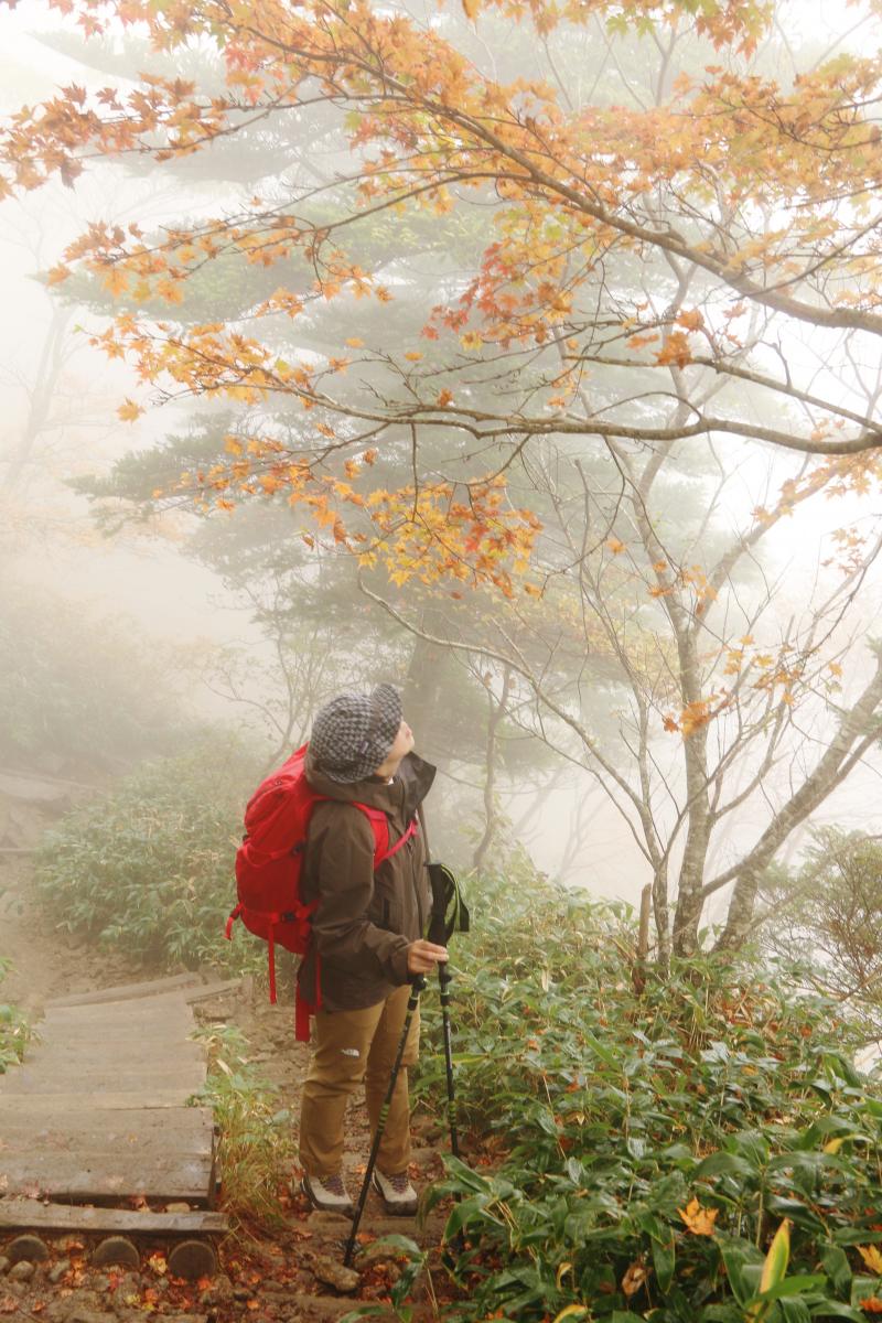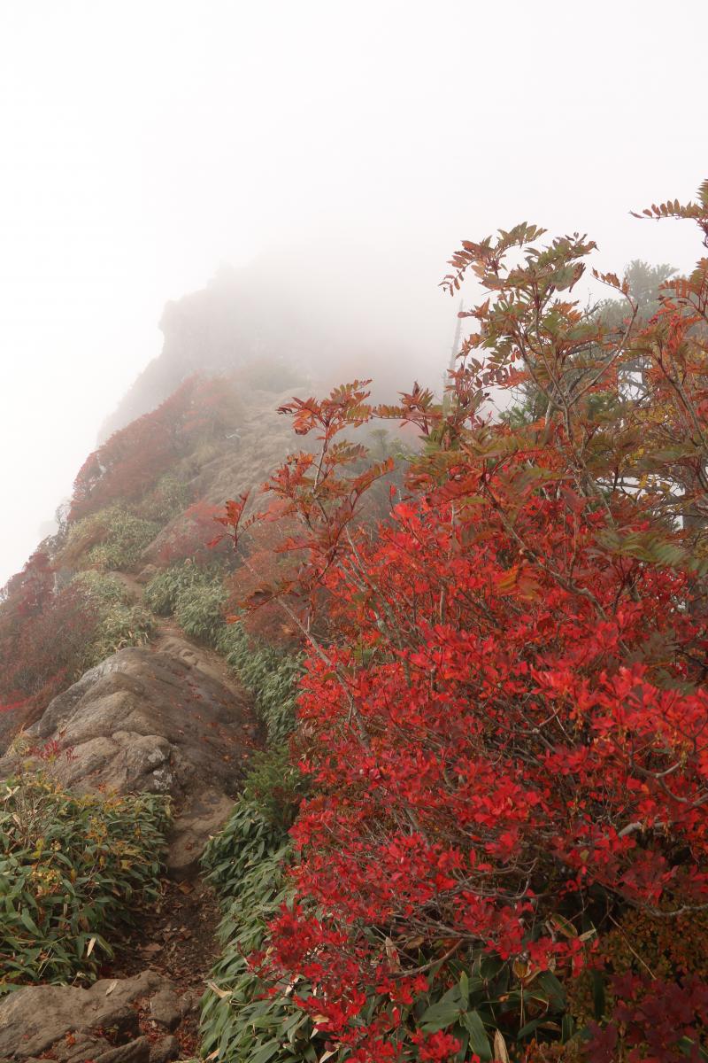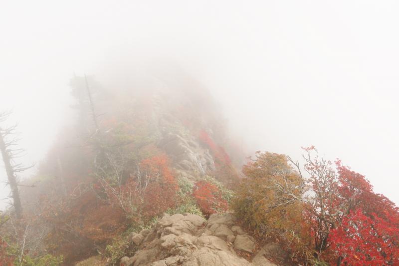 ガスの石鎚山でしたが、一瞬見えた北壁と紅葉は素晴らしく、幻想的でした。