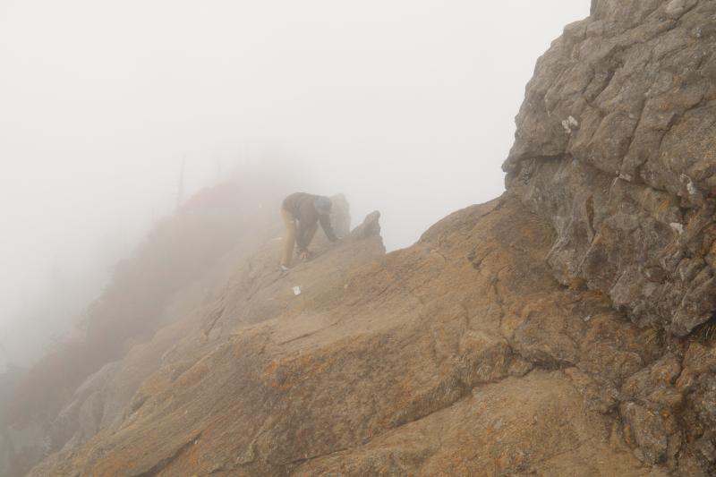 天狗岳までも、靴の濡れと岩の湿りもあり、通常より滑りやすかったです。