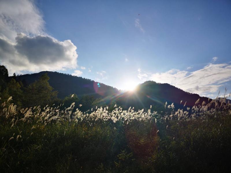 登山口へ到着すると秋の西日がススキを照らし、安堵の風景が広がっていました。とりあえず山頂行けて良かった。来年はもっと体力をつけて、ぜひ周回リベンジしてみたいです。