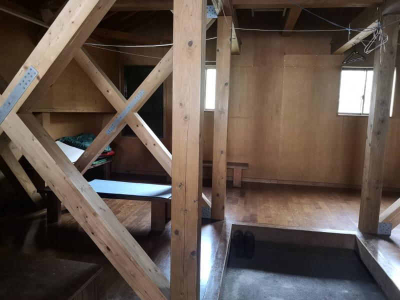 ・避難小屋トイレあり。小屋内部はとても清潔感があり寝具も多少置いてあります。水場も小屋の裏手にあるようです。看板ありましたが未確認です。