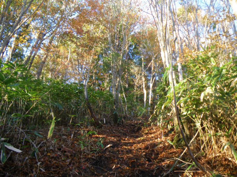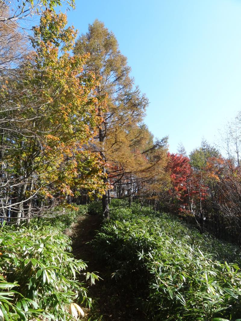 国道153号が山麓を走ることからアプローチしやすく、私も10年以上前の冬に登っています。この山には秋の赤い羊、初冬の白い羊というのがあり、山頂直下の笹原に点々としたツツジが放牧された羊のように見えるのですが今回はその赤い羊を求めて、登ってきました。