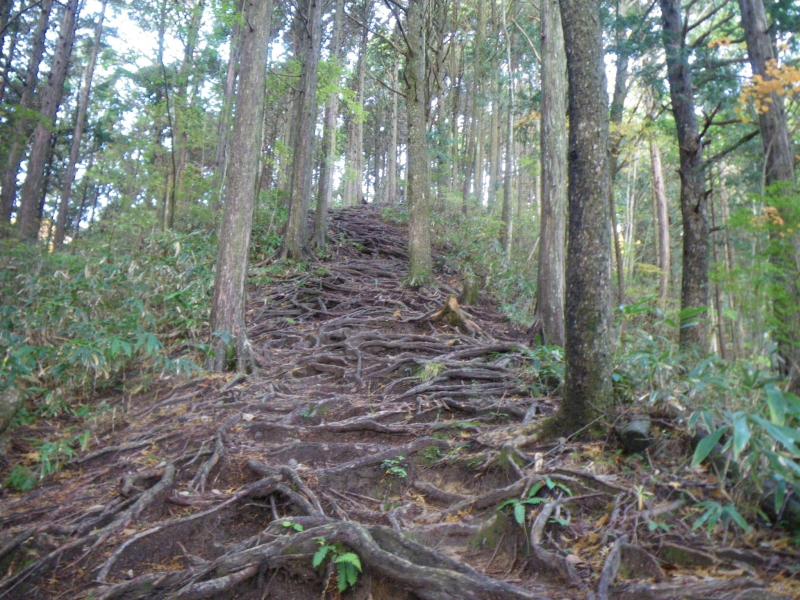 ➂治部坂高原からのコースは下部が木の根っこが張りめぐらせた傾斜のある登山道です