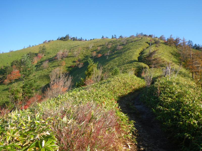 ➃横岳からしばらく傾斜が緩やかな尾根道で小ピークを超えていきます