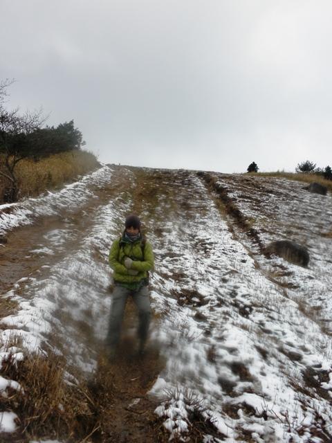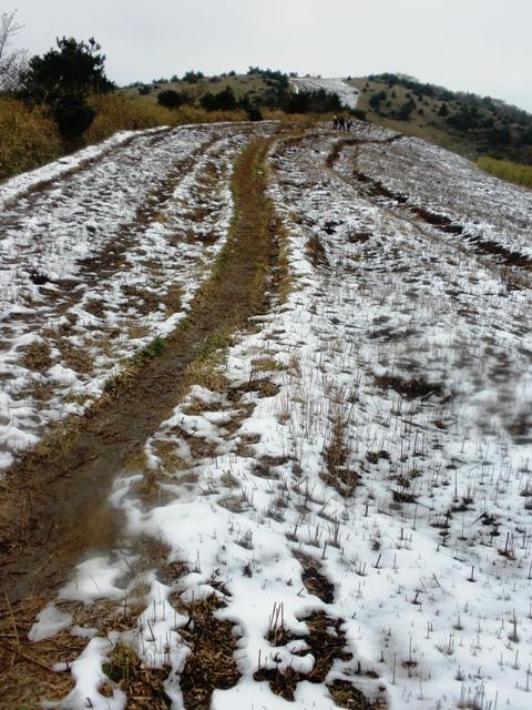 - 12月10日の冷え込みで、薄っすら四方台より貫山山頂まで雪が付いていました。足元はグズグズですのでズボンなど汚れない為にも、スパッツなどは必須です。また貫山山頂直下の防火帯の急登はかなり地盤もゆるく滑りやすいので気をつけられて下さい。
