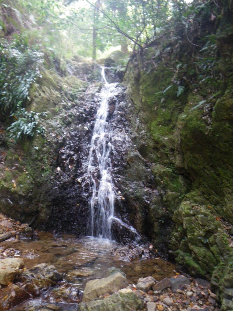 ➁細野キャンプ場から登山道が始まりますが、沢道と尾根道があります。尾根道は上部は階段です。沢道は途中に縁者不動の滝があります。