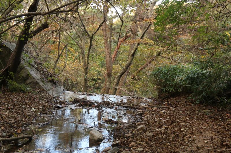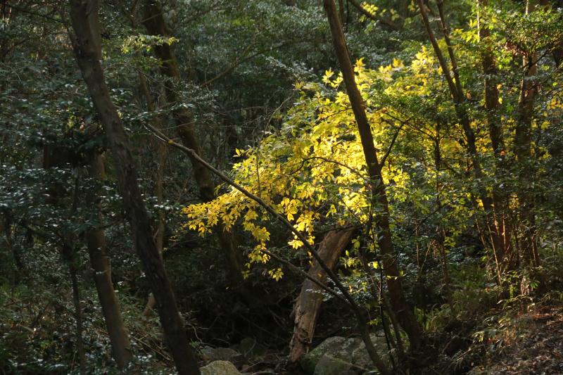 夕方所要の為、風吹岩から岡本に下る最短ルートで下るつもりが、紅葉が綺麗で、川沿いのコース(黒五谷)道に入っておりました。初ルートですが、いつもの住吉の間だなあと感覚的に分かったので、そのまま進みます。イロハカエデの紅葉が綺麗でした。