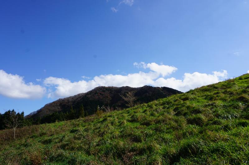 下りきると、旧雷山スキー場へ。草場を歩き、雷山避難小屋横を過ぎると、