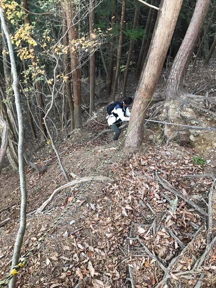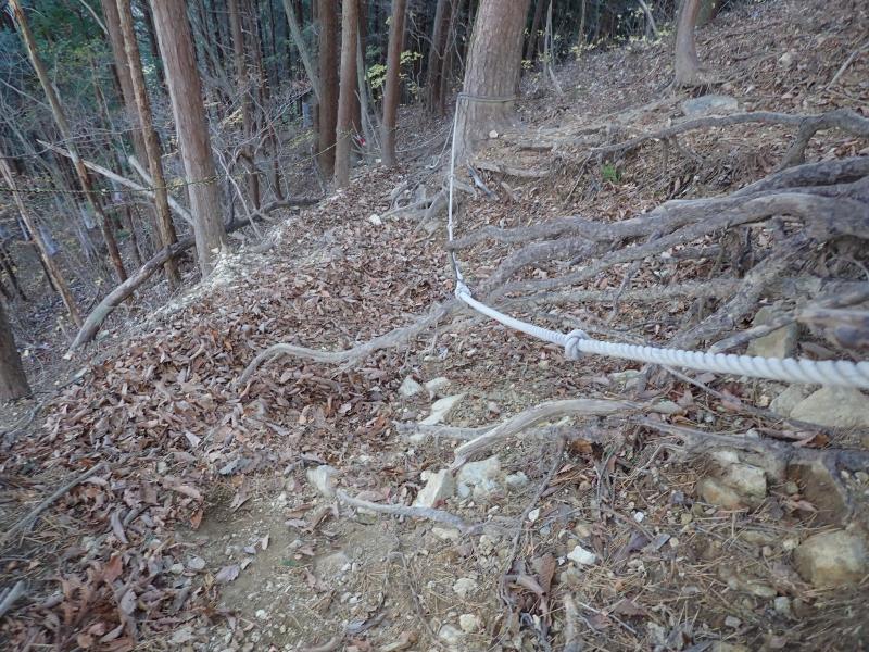 そのあとは、木の根っこの多い道、ロープがさがっている道など結構急でした。