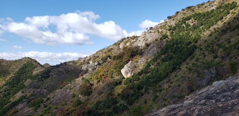 このルートは岩場歩きがメインで一気に標高が上がります。無理せずペースを守って歩きましょう。主稜線に出ればあとはのんびりと山頂を目指します。平日ということもあり、この山には珍しく山頂には10人ほどしか人がいませんでした。