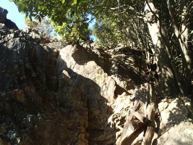 それなりに楽しくややスリリングな岩場のコースだが、足場はしっかりしているので見かけほど難しくはない。ただ、一歩が大きい所もあったので、子供には難しいだろう。