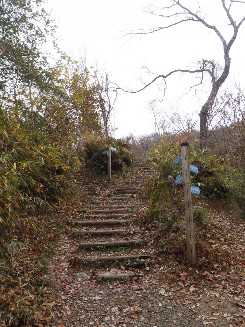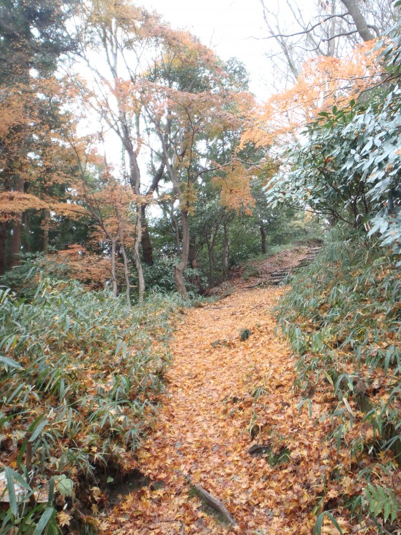 下りは落ち葉で足元が少し滑りやすいことがあります。