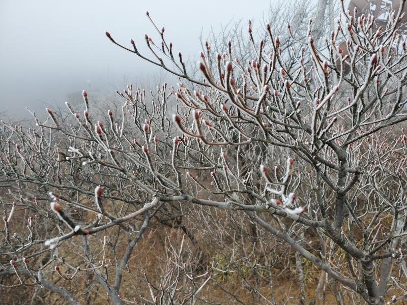 いざ山へ到着すると、どんよりとした曇り空。気温は低いし、歩いてるとまさかの粉雪・・・。これも山あるあるですよね。
