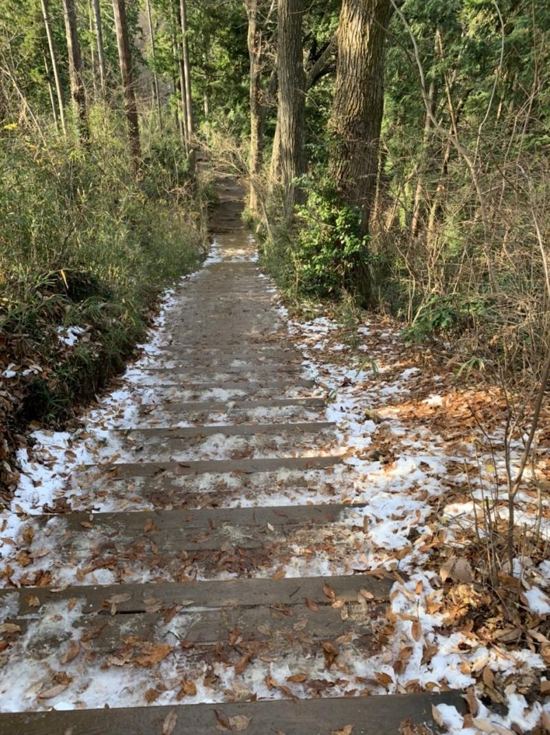 ※3歳のムスメは稲荷山コース入口~稲荷山展望台・山頂手前の階段を自分で登りました。展望台から山頂手前階段まではお昼寝の時間が重なったこともあり私が背負いました。