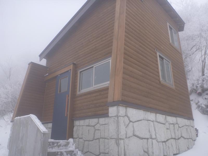 仮工事中の避難小屋で、ゆっくり昼ごはんを頂きました。