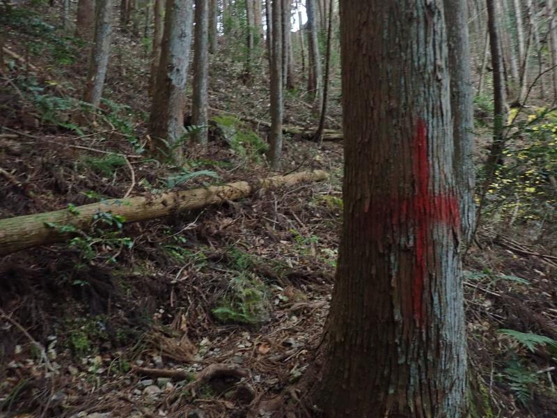 赤岩山までの上りは踏み跡がありますが、所々崩落で消えています。
