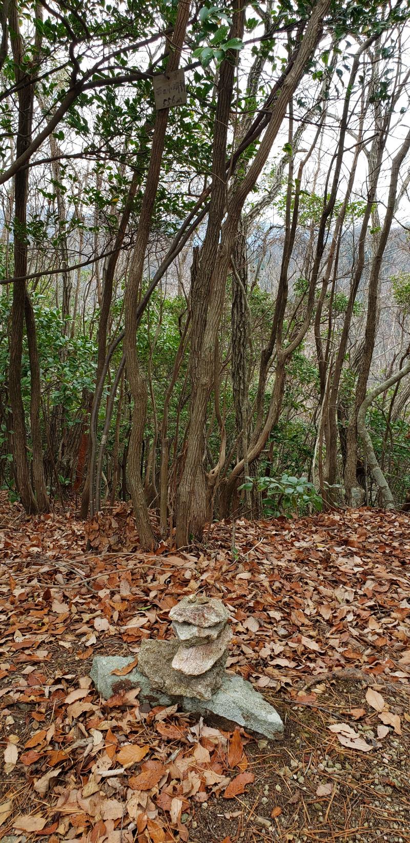 - 駐車場(5)T字尾根取り付き(50)西の小明神(5)尾切れルート分岐(30)駐車場