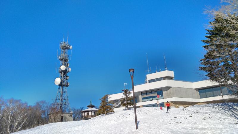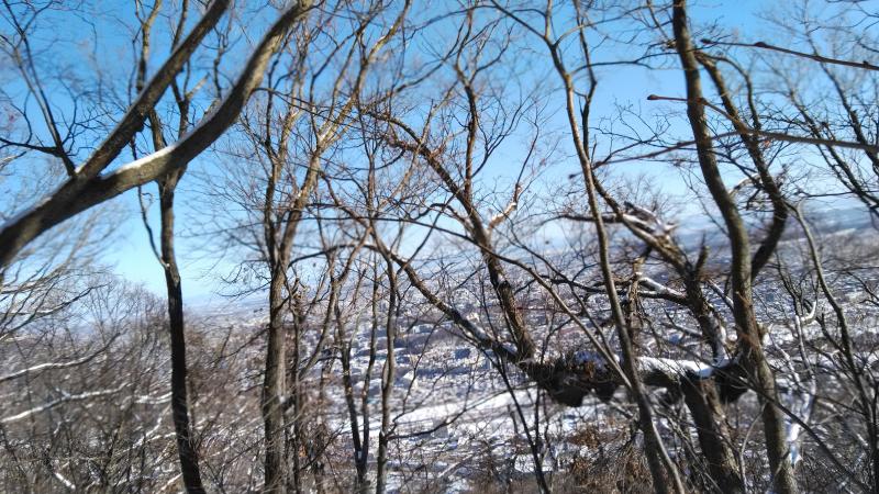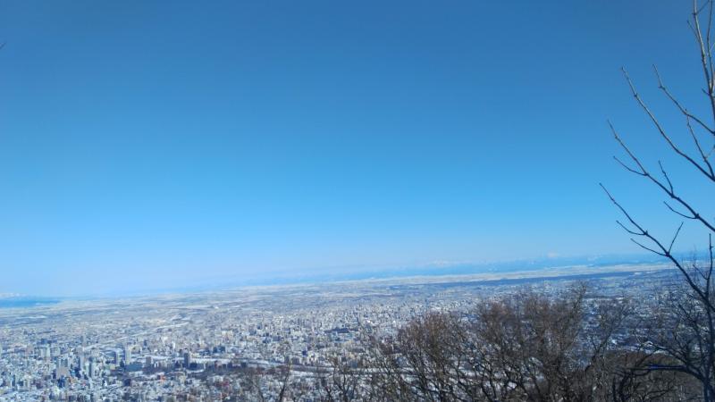 それにしても久しぶりの冬トレランは短い距離でもキツい。フラフラになりながらやっと頂上につきました。この日は風もなく快晴で頂上からの眺望はいつにもまして素晴らしの一言。札幌の街並み、その向こうには増毛の山々や大雪山も見えました。こんな眺望がいいのも久しぶりかもしれません。