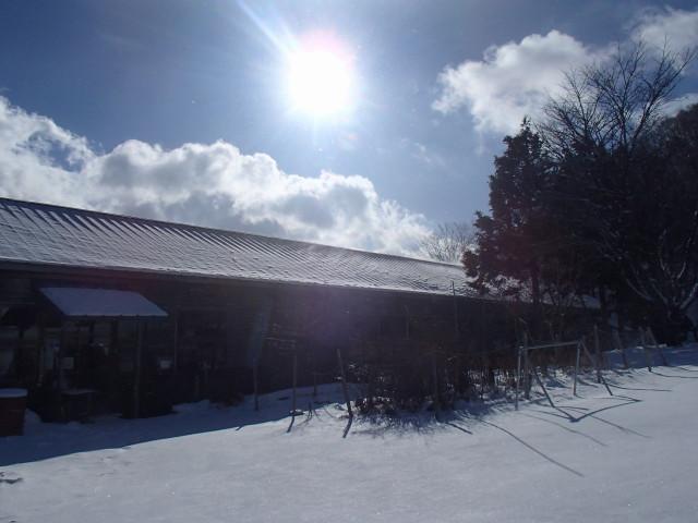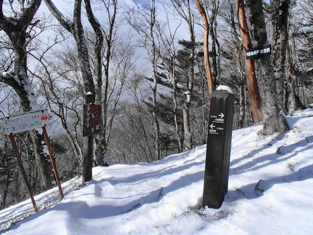 和佐又山ヒュッテに上がる車道も最初の核心で降雪が多くなると4WD+スタッドレス+チェーンが必要。今回は2WD+ノーマルタイヤ+チェーンで登れましたが2年前の2月は登れないばかりかあきらめて下り始めた車の後部が右に滑り左に滑りと大騒ぎ。怖い思いをしました。